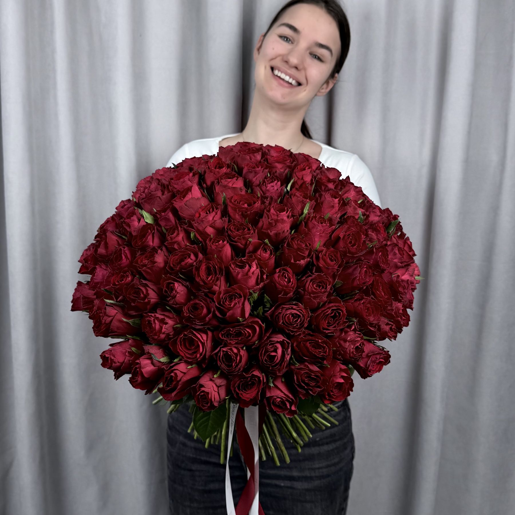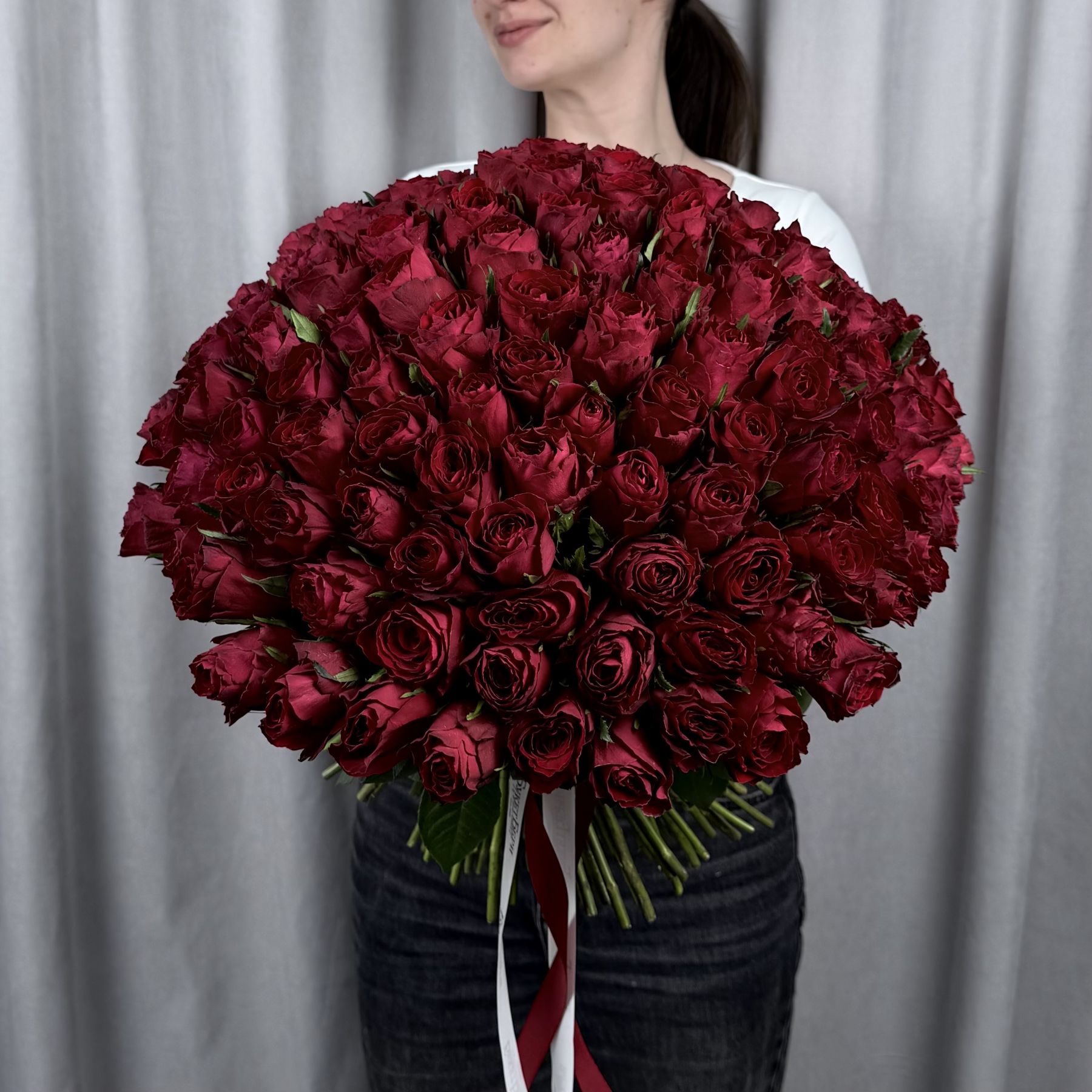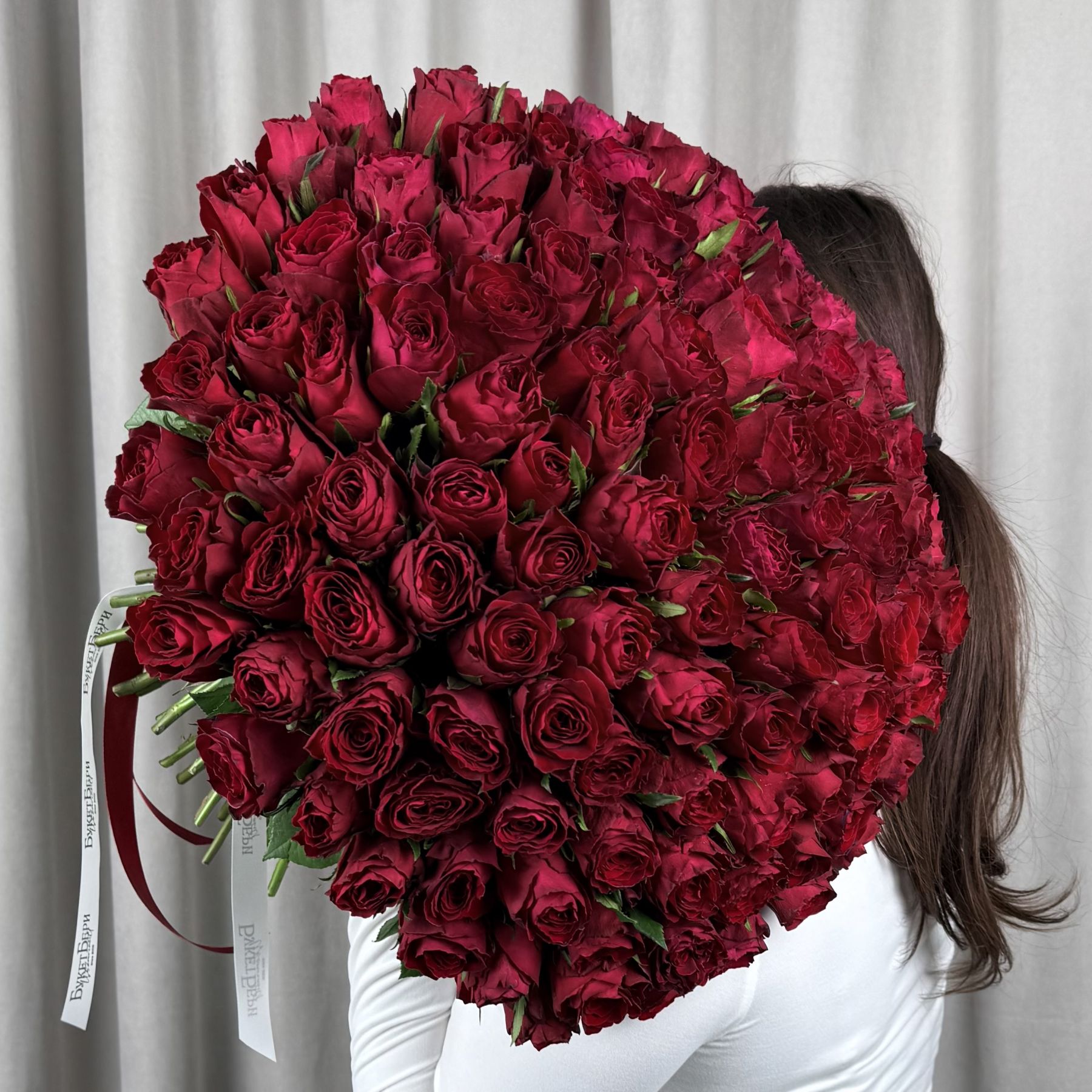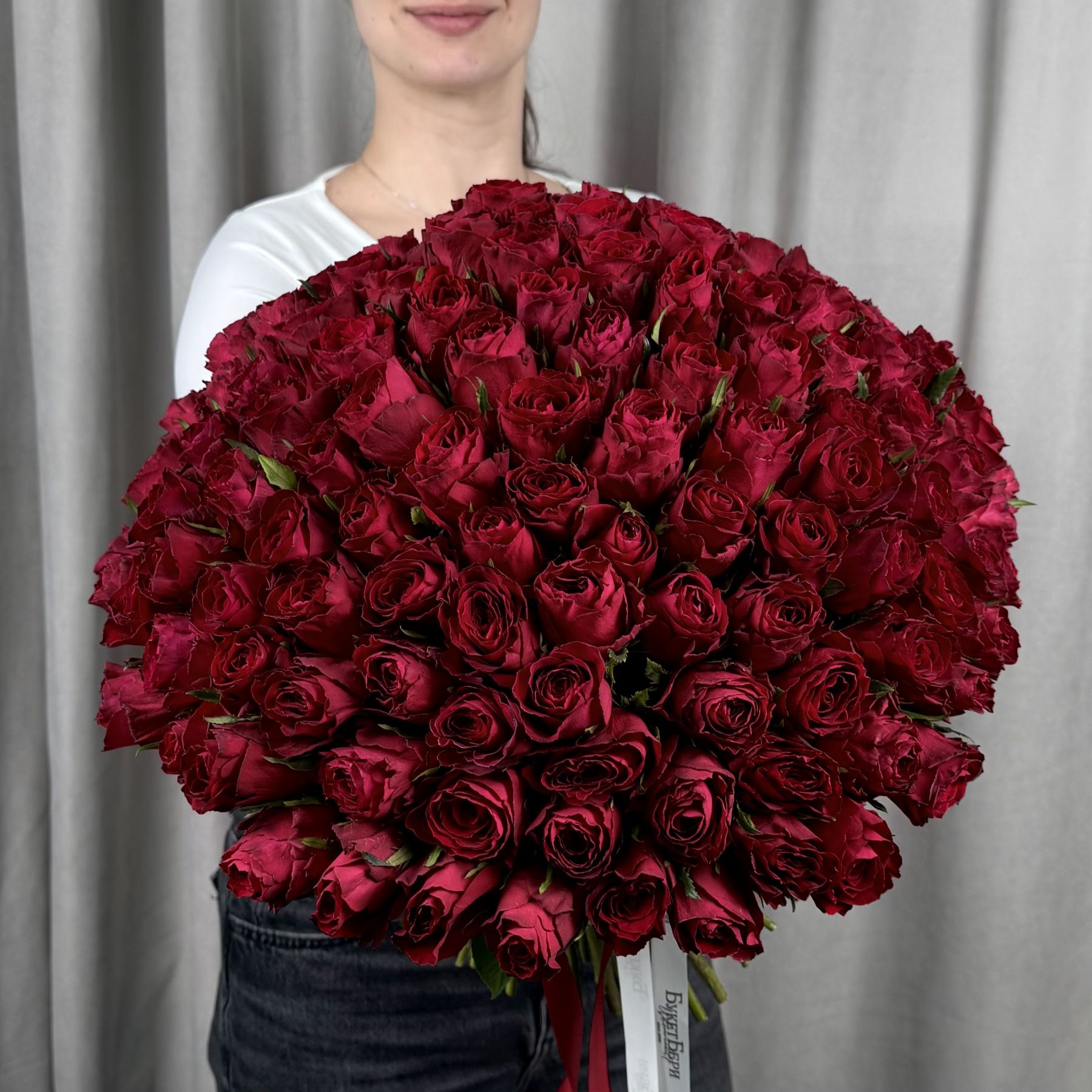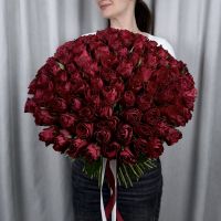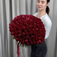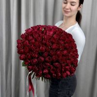 Букет из 101 красной кенийской розы 40 см под ленту.