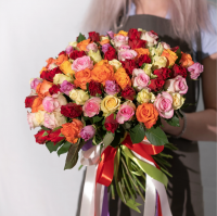 В зависимости от поставки цвета роз в букете могут быть частично изменены.