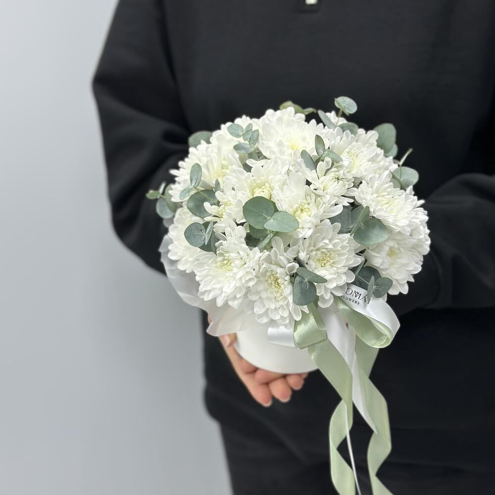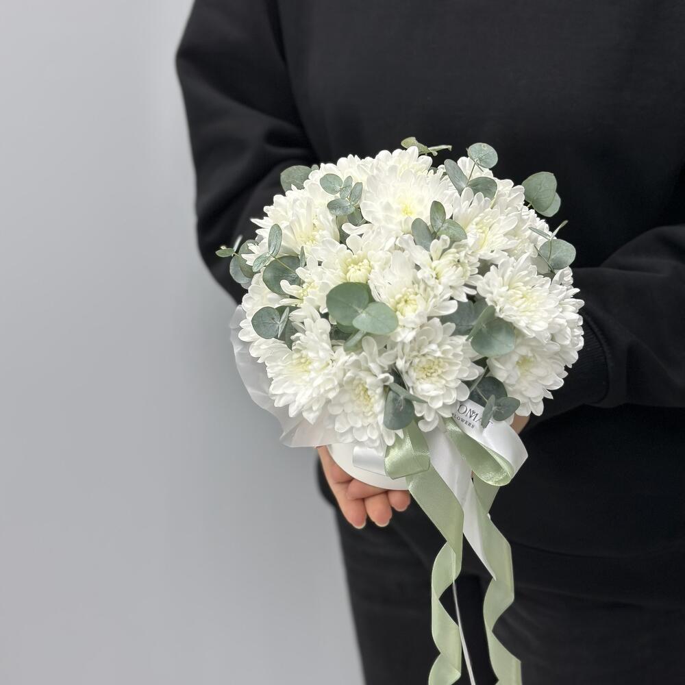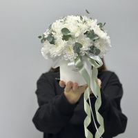 Состав: Хризантема кустовая - 3 штуки Эвкалипт - 4 шт Размер: 15х13