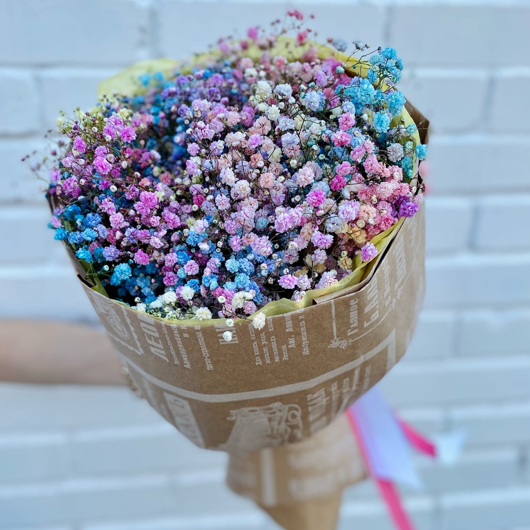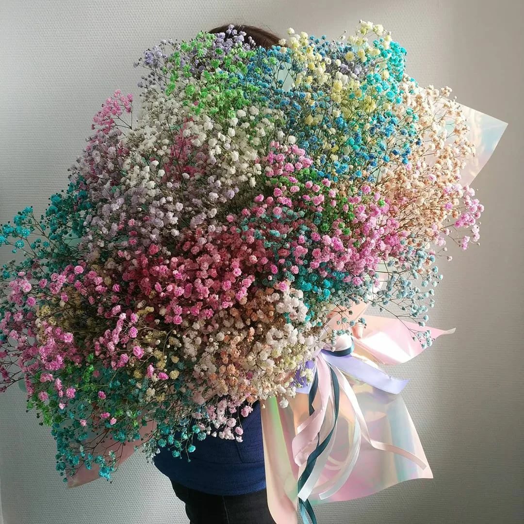 Букет из разноцветной радужной воздушной гипсофилы.