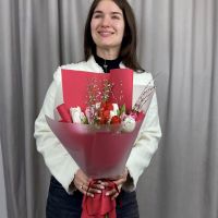 Букет будет доставлен в специальной транспортировочной коробке с подпиткой, инструкцией по уходу и открыткой в подарок.