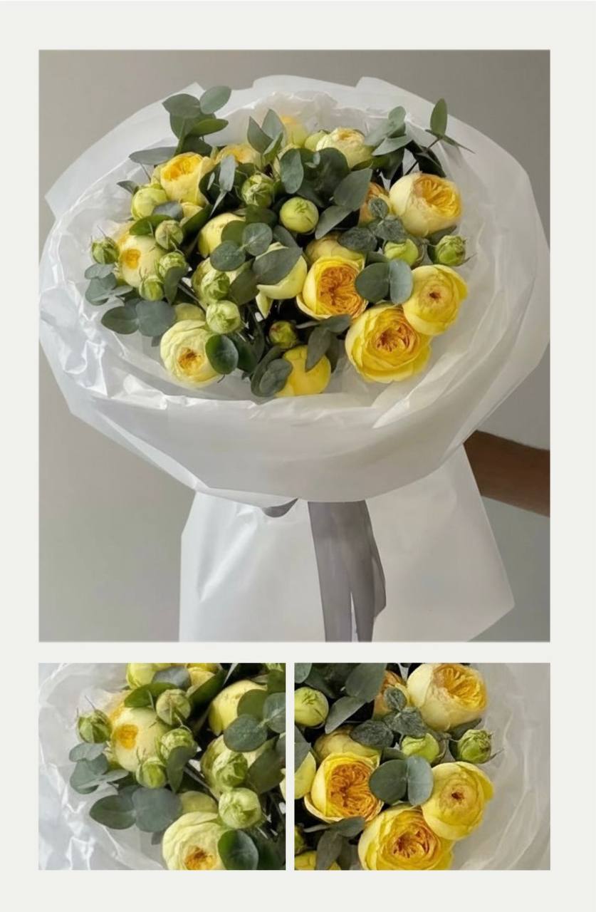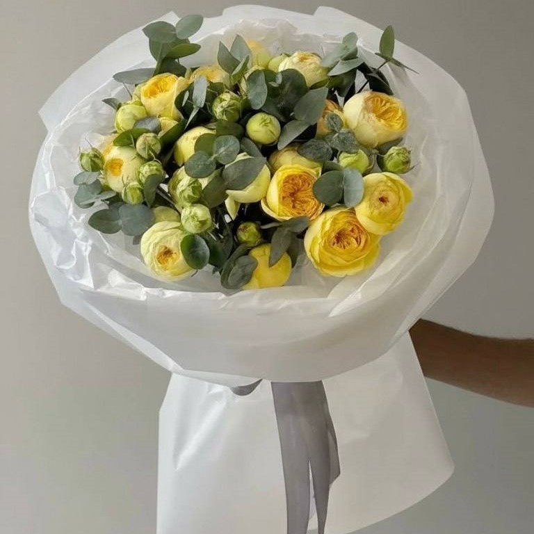 Красивый монобукет из желтых пионовидных кустовых роз.