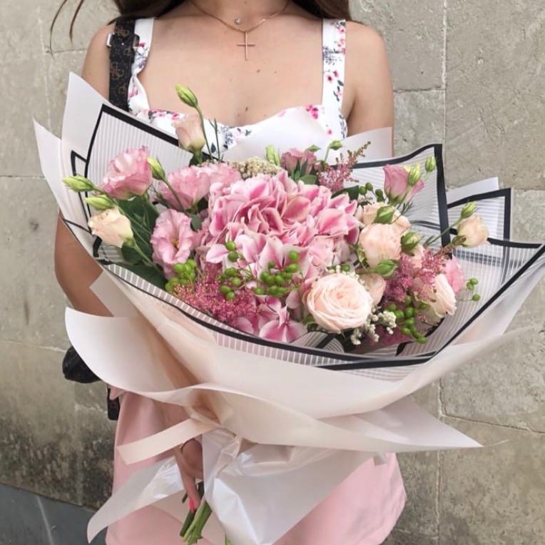 Состав: Гортензия, пионовидная роза и эустома