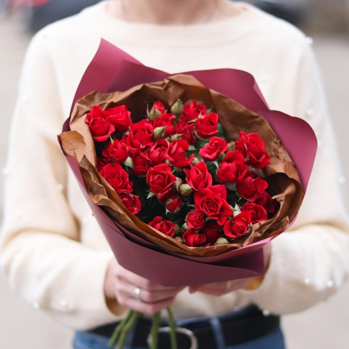 Букет из розовых кустовыз роз микс, количество веточек любое на Ваш выбор.