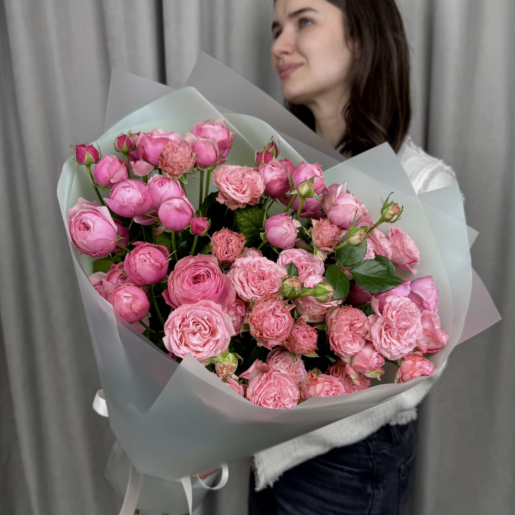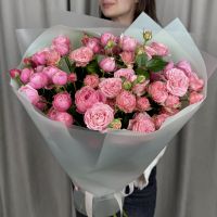 Красивый букет из микса кустовых пионовидных роз.