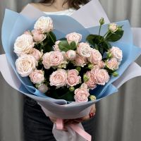 Сборный букет из 7 кустовых пионовидных нежно-розовых роз.