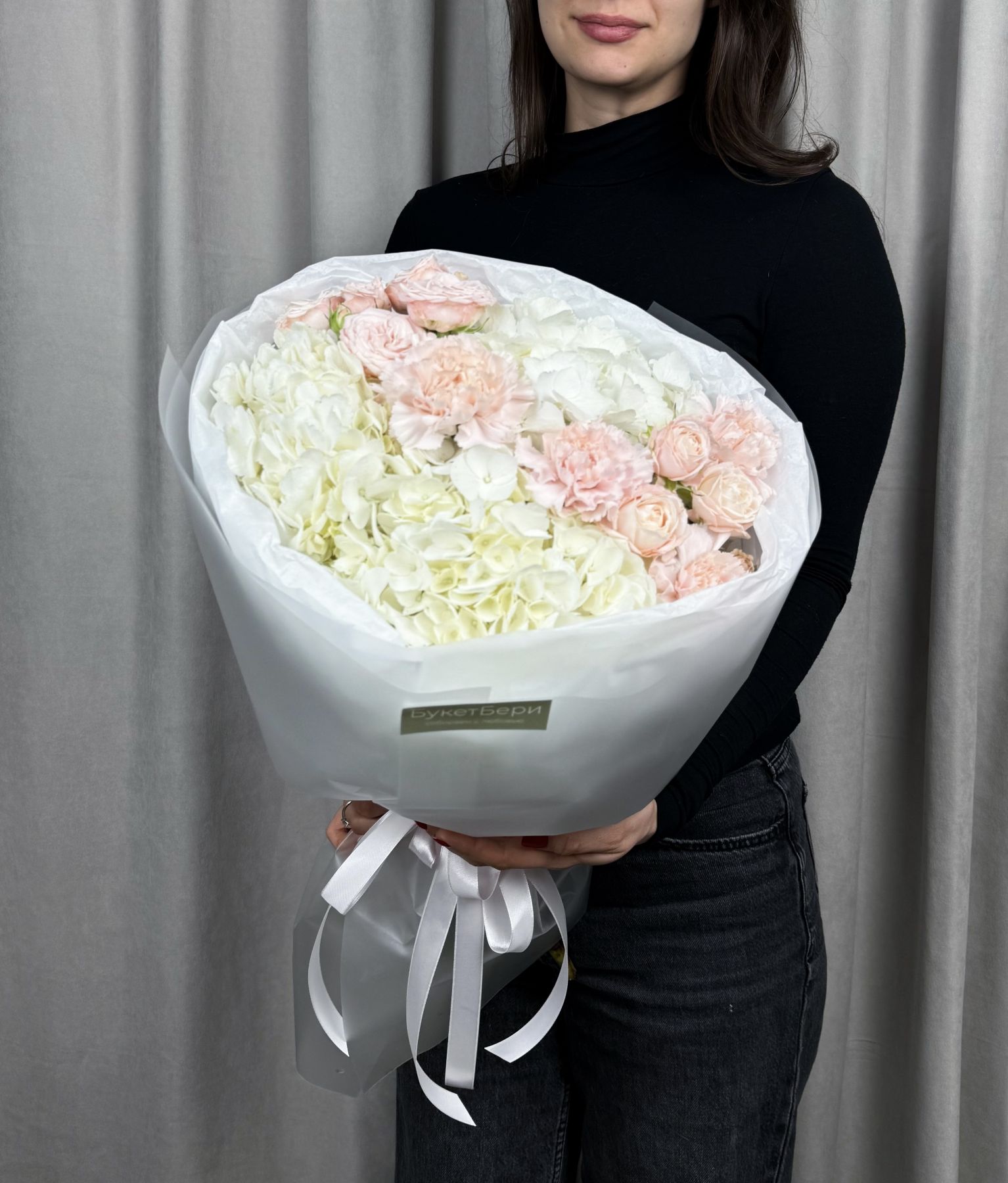 Букет будет доставлен в специальной транспортировочной коробке с аквабоксом.