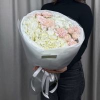 Букет будет доставлен в специальной транспортировочной коробке с аквабоксом.