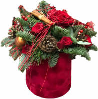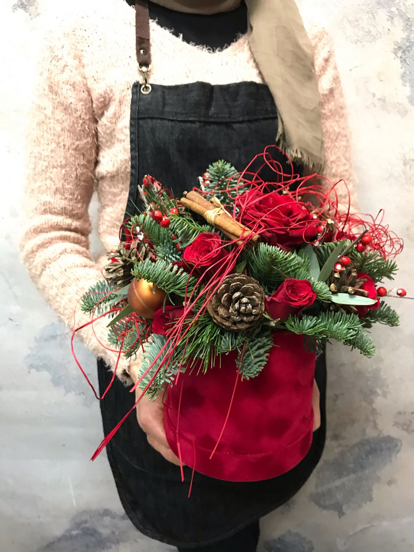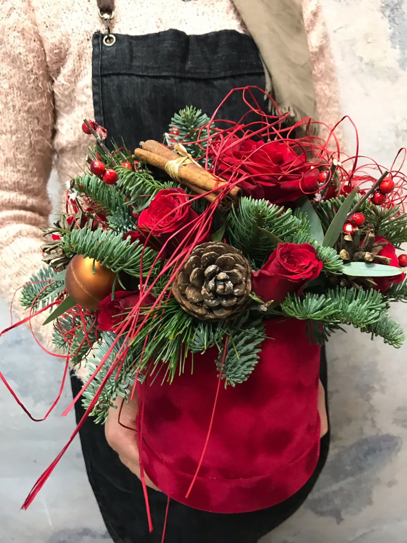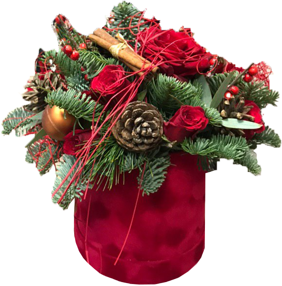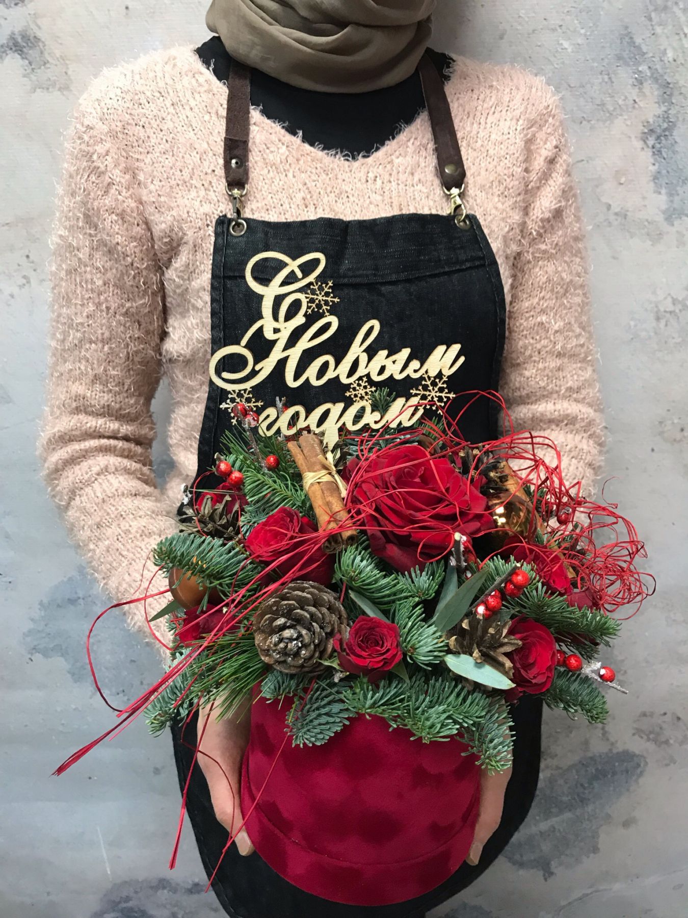 Состав: нобилис, корица, шишки, новогодний декор, цветочный бокс, оазис. Размер: 18*30 см