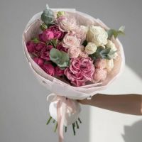 Сборный букет из нежных кустовых и пионовидных роз из специальной коллекции ко Дню Матери.