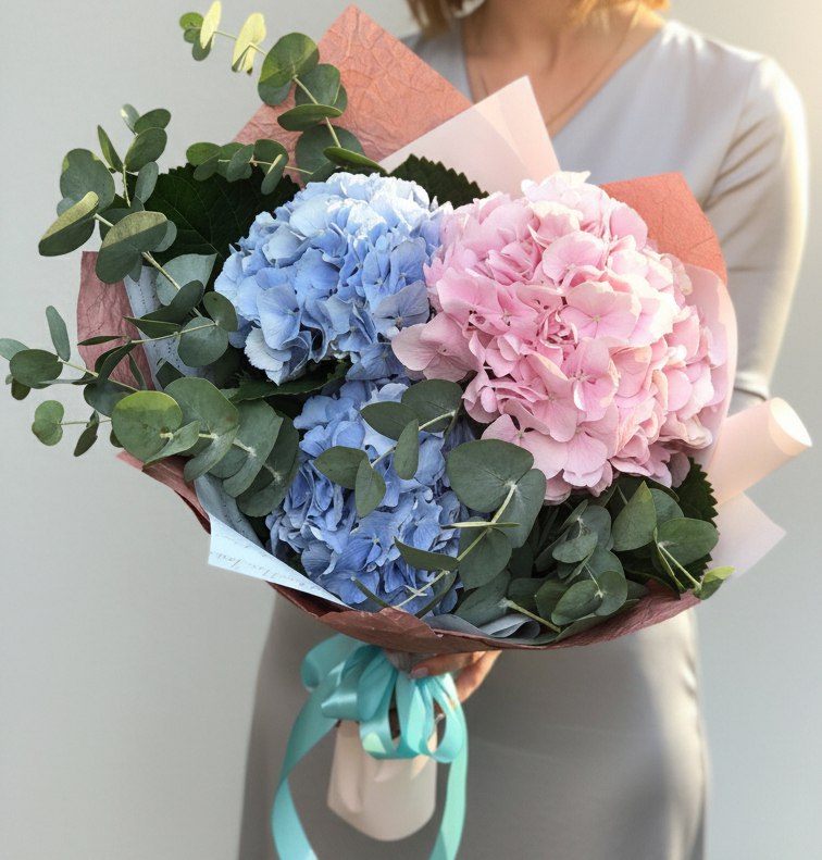 Гортензия микс в красивой упаковке, зелень.